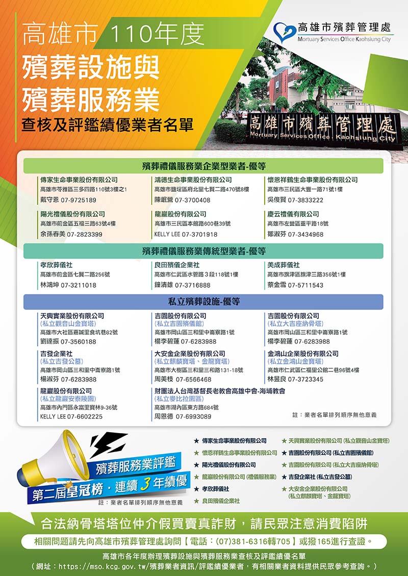 2021高雄市殯葬設施與殯葬服務績優業者